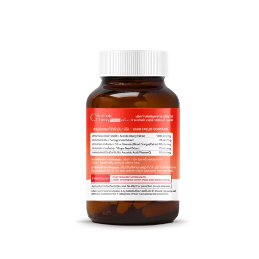 - Acerola Cherry Extract (สารสกัดอะเซโรล่า เชอร์รี่) 1000 mg